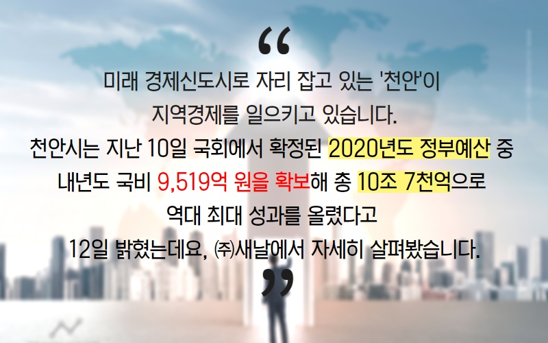 천안시, 내년 총사업비 '10조 7천억'... 9,519억원 국비확보